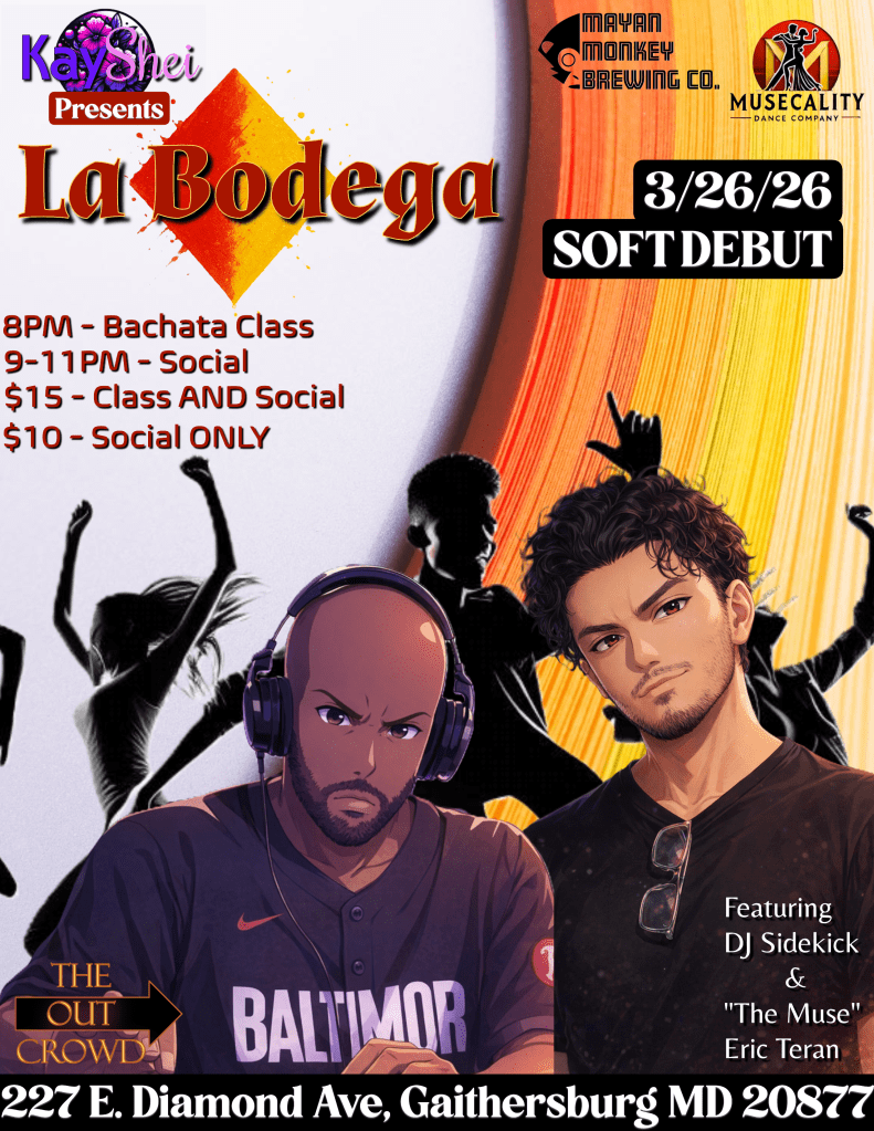 It will be a ratio that will lean more bachata than salsa, however, like at Echale, we will dictate our plan regarding music to you, the people. If you like it, we’ll play it. If you live locally near the Rockville Town Square and heard the name ‘Bodega’ before, it’s with good reason. It was there that the person now known as DJ Sidekick and “The Muse” Eric Teran formed a partnership to try hard to get people to come and drink at the bar. We had some good nights and some rough ones but when it was all said and done, we were proud of that social.